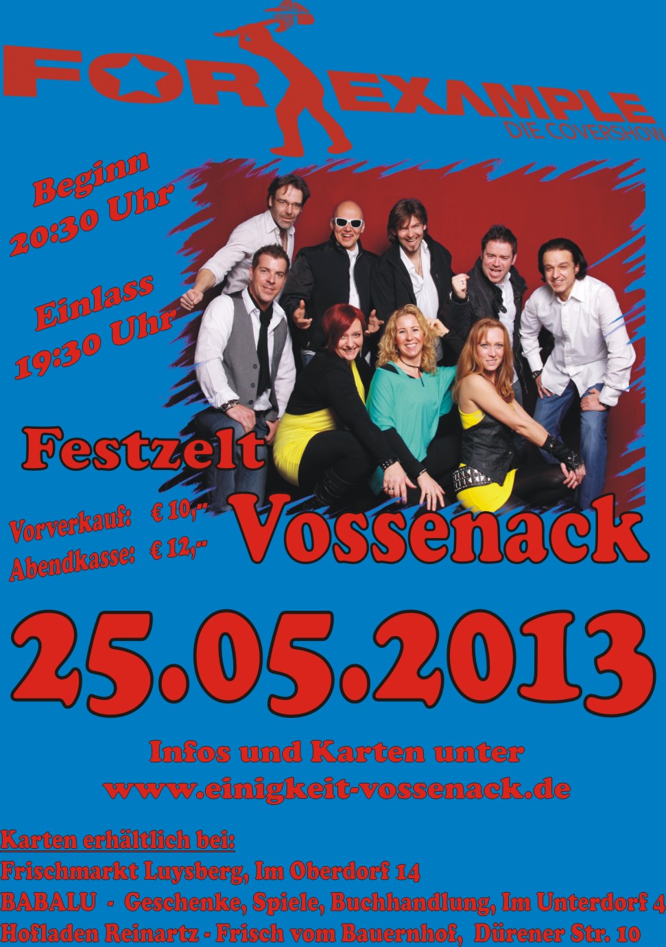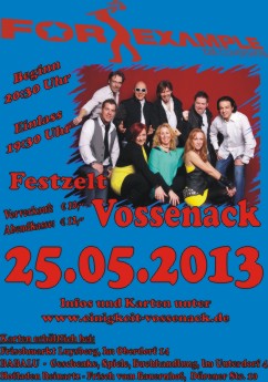 Am 25. Mai spielt die über die Region bekannte Coverband “FOR EXAMPLE”. Karten gibt es ab sofort im Vorverkauf für 10 € an folgenden Vorverkaufsstellen: